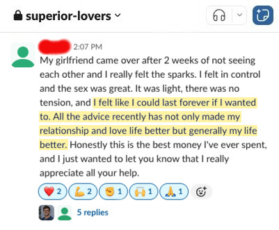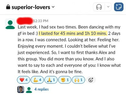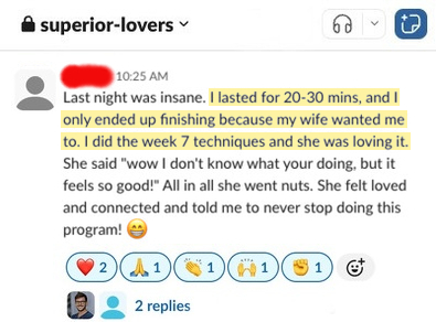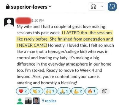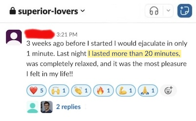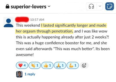 This creates accountability, belief, and real proof that men just like you are gaining control and lasting longer.
