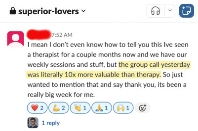 Calls are capped at just 8 men, so everyone gets the chance to share and receive personalized coaching and direct feedback.