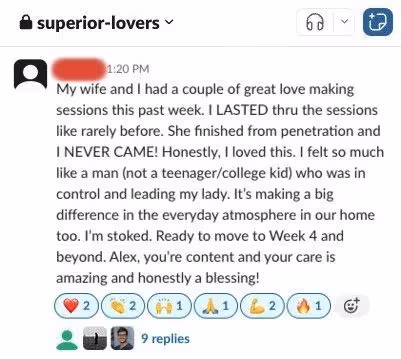 This creates accountability, belief, and real proof that men just like you are gaining control and lasting longer.