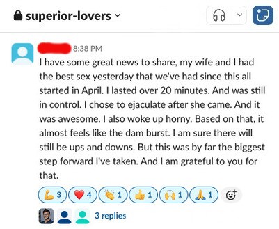 To overcome my performance issues is one thing but to experience the mind blowing pleasure I have been (with the full body NEOs) I have literally been in heaven.